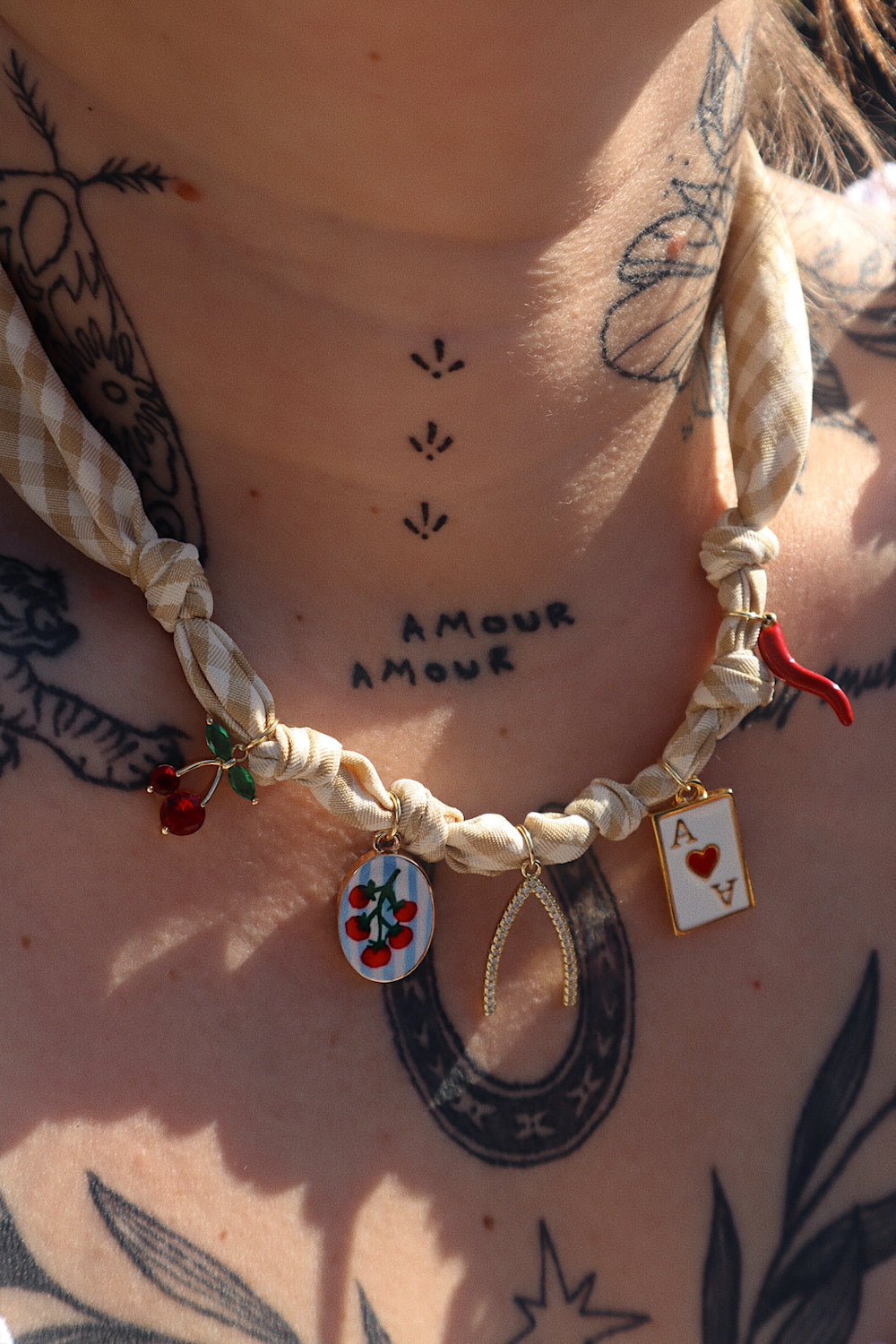 - Materials: Vintage Fabric & Gold Filled Charms